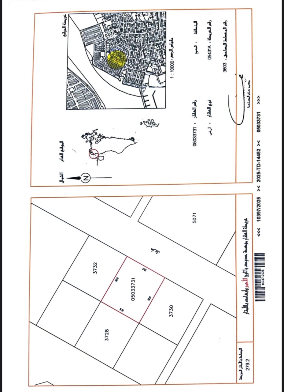 أرض سكنية للبيع في البديع بتصنيف RA (سكن خاص - أ) تقع على شارع واحد. مساحة أرض 279.2 متر مربع, بسعر 25.95د.ب لكل قدم مربع , السعر الإجمالي 78,000.000د.ب