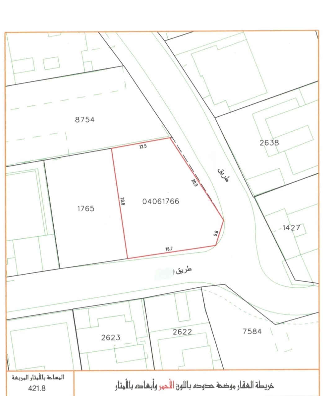 421.8 المساحة بالمتر المكعب