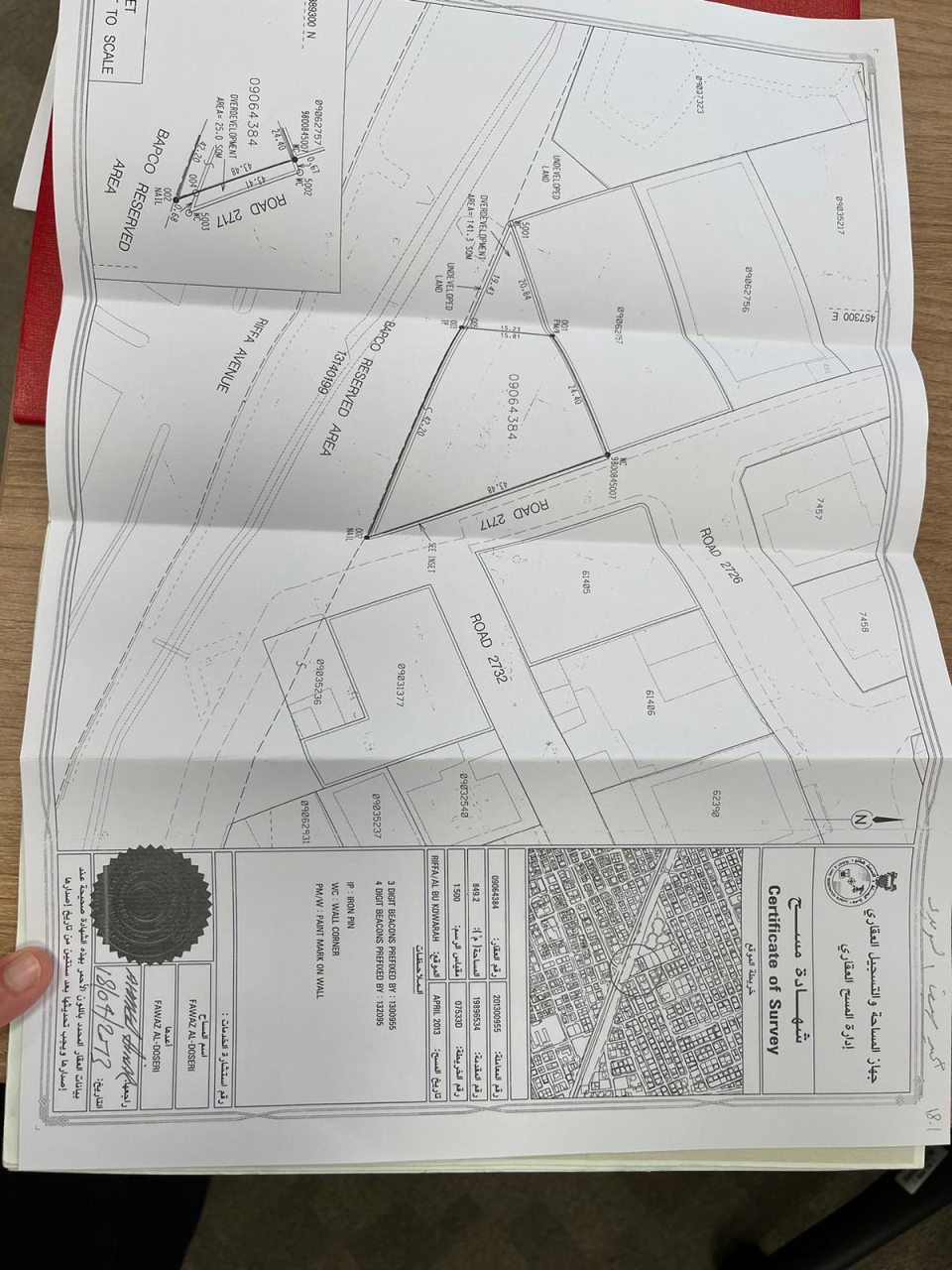 أرض سكنية للبيع في الرفاع بتصنيف RB (سكن خاص - ب). مساحة أرض 849.2 متر مربع, بسعر 25.00د.ب لكل قدم مربع , السعر الإجمالي 228,519.750د.ب