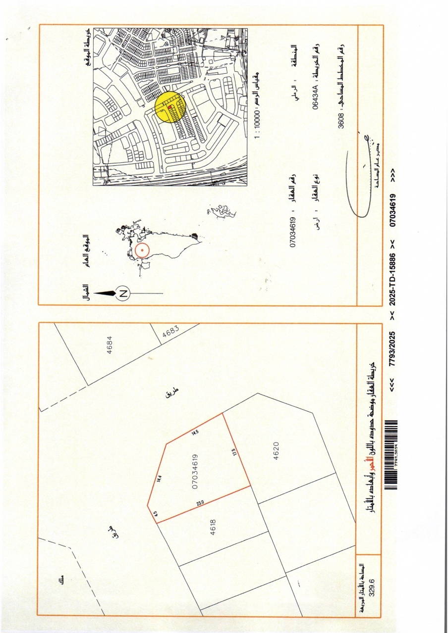 أرض سكنية للبيع في الرملي بتصنيف RHA (سكن متصل - أ) تقع على شارعين (زاوية). مساحة أرض 329.60 متر مربع, بسعر 28.00د.ب لكل قدم مربع , السعر الإجمالي 99,338.680د.ب