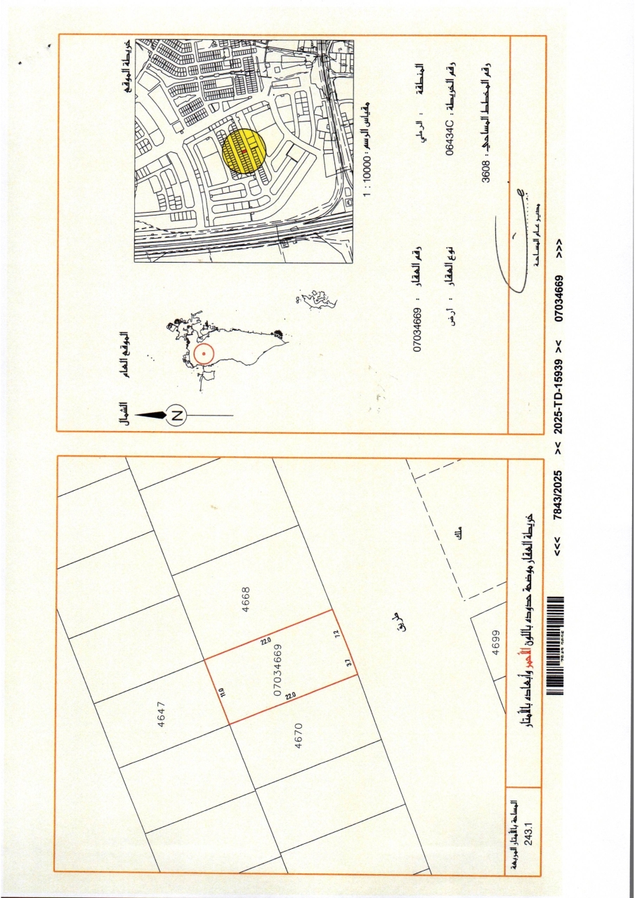 أرض سكنية للبيع في الرملي بتصنيف RHA (سكن متصل - أ) تقع على شارع واحد. مساحة أرض 243.10 متر مربع, بسعر 31.00د.ب لكل قدم مربع , السعر الإجمالي 81,118.630د.ب