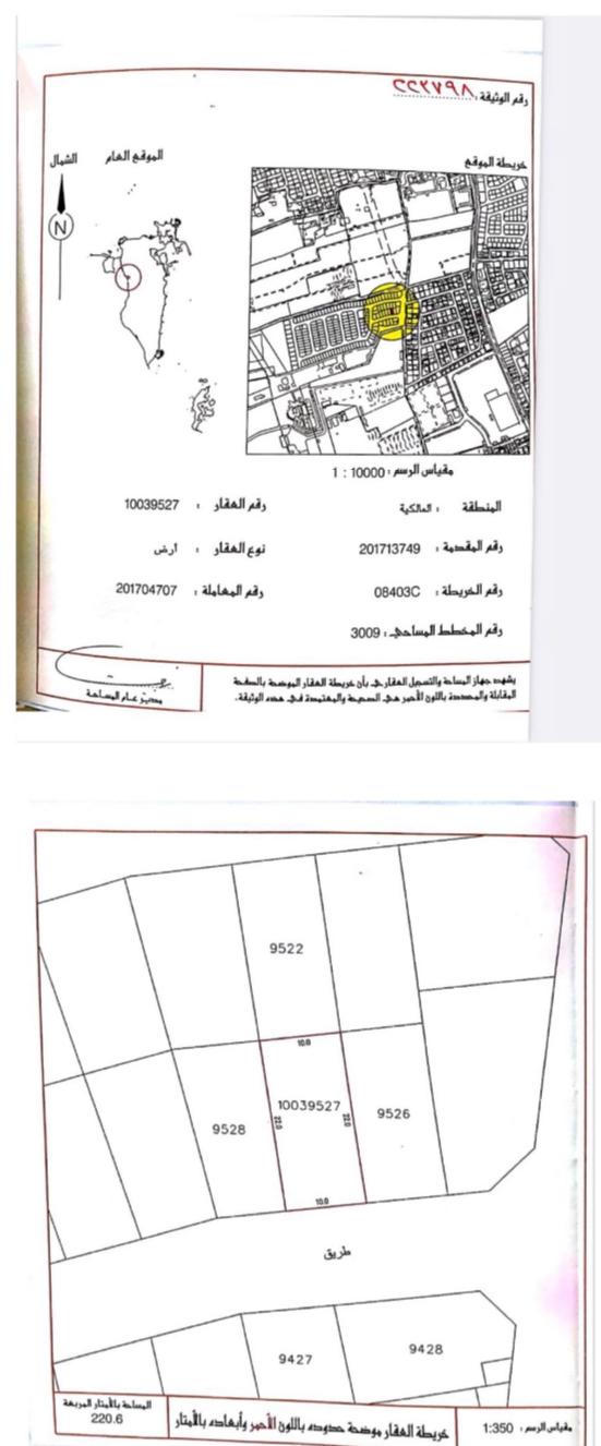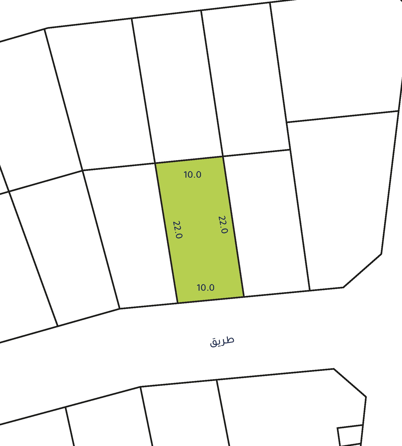 أرض سكنية للبيع في المالكية بتصنيف RHA (سكن متصل - أ) تقع على شارع واحد. مساحة أرض 220.50 متر مربع, بسعر 31.60د.ب لكل قدم مربع , السعر الإجمالي 75,001.399د.ب