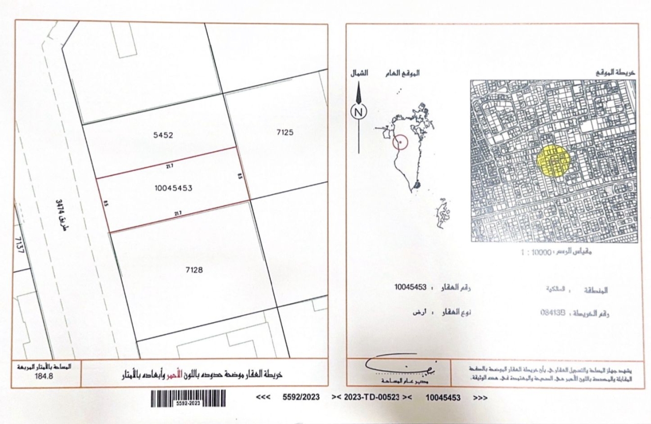أرض سكنية للبيع في المالكية بتصنيف RB (سكن خاص - ب). مساحة أرض 184.8 متر مربع, بسعر 32.68د.ب لكل قدم مربع , السعر الإجمالي 65,000.762د.ب