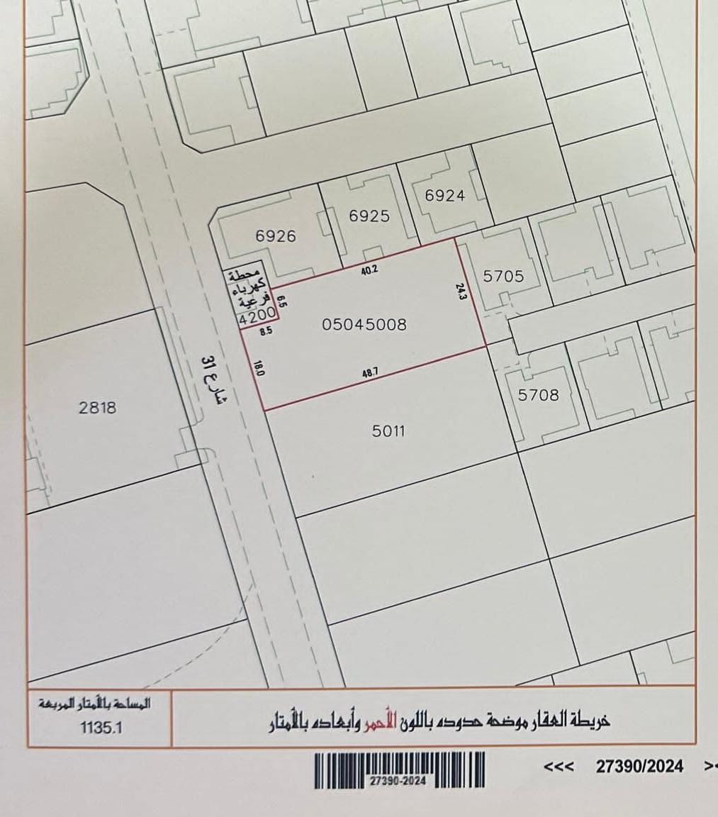 أرض سكنية للبيع في المرخ بتصنيف RA (سكن خاص - أ). مساحة أرض 1135.1 متر مربع, بسعر 24.00د.ب لكل قدم مربع , السعر الإجمالي 293,237.280د.ب