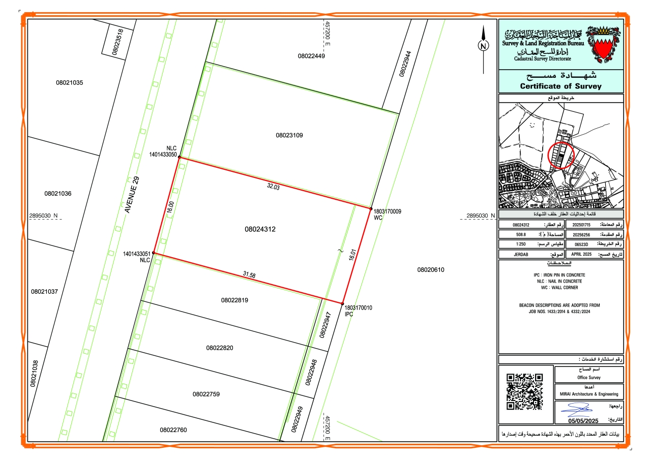 أرض سكنية للبيع في جرداب بتصنيف RA (سكن خاص - أ). مساحة أرض 508.8 متر مربع, بسعر 29.00د.ب لكل قدم مربع , السعر الإجمالي 158,824.880د.ب