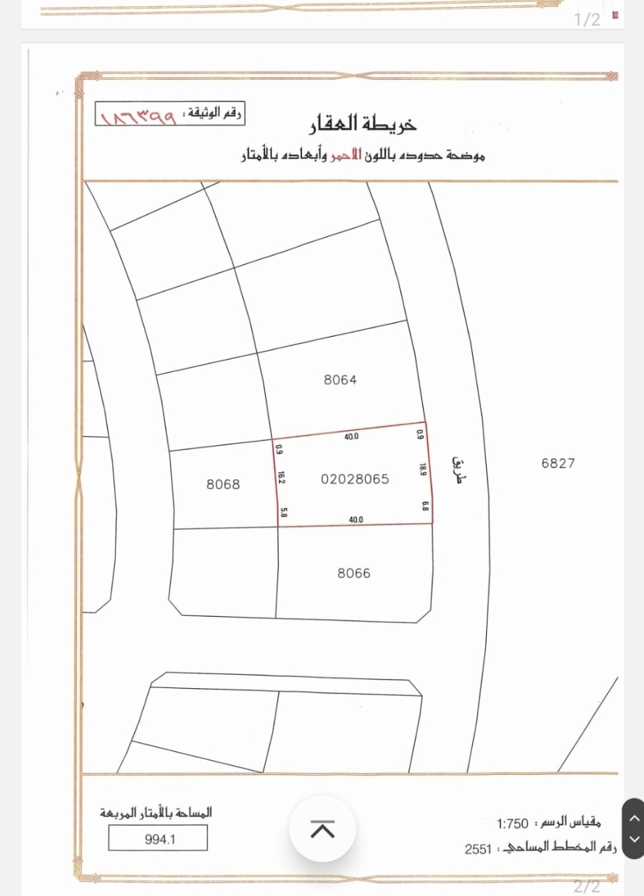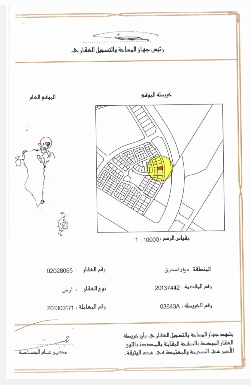 أرض سكنية للبيع في ديار المحرق بتصنيف RA (سكن خاص - أ). مساحة أرض 994.1 متر مربع, بسعر 24د.ب لكل قدم مربع , السعر الإجمالي 256,811.760 د.ب
