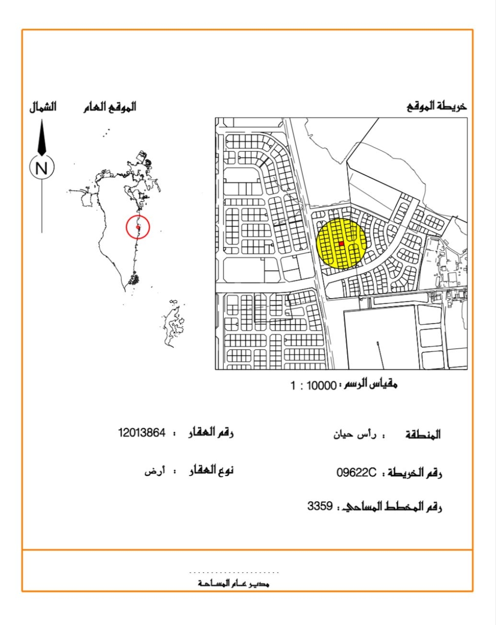 أرض سكنية للبيع في رأس حيان بتصنيف RA (سكن خاص - أ). مساحة أرض 308.2 متر مربع, بسعر 21.70د.ب لكل قدم مربع , السعر الإجمالي 72,000.000د.ب