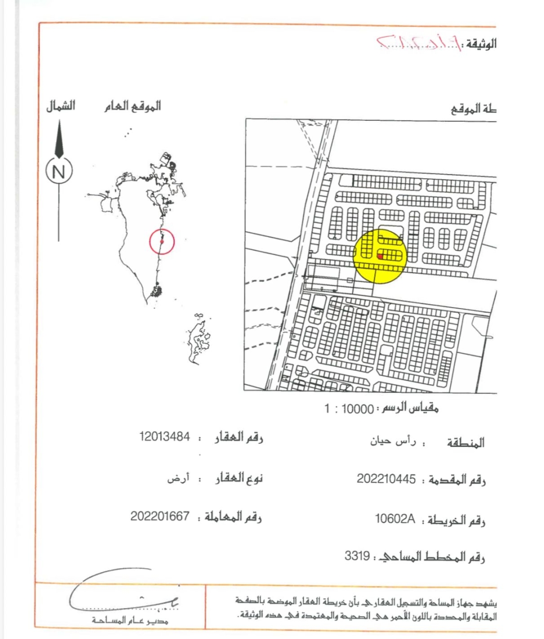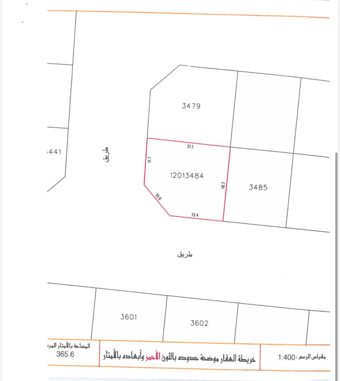 أرض سكنية للبيع في رأس حيان بتصنيف RA (سكن خاص - أ). مساحة أرض 365.6 متر مربع, بسعر 21.00د.ب لكل قدم مربع , السعر الإجمالي 82,641.720د.ب