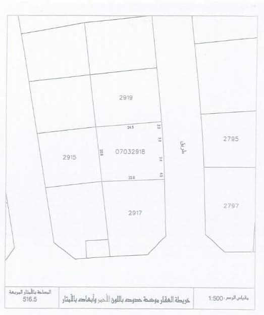 أرض سكنية للبيع في سلماباد بتصنيف B3 (عمارات 3 طوابق) تقع على شارع واحد. مساحة أرض 516.5 متر مربع, بسعر 24.00د.ب لكل قدم مربع , السعر الإجمالي 133,430.640د.ب