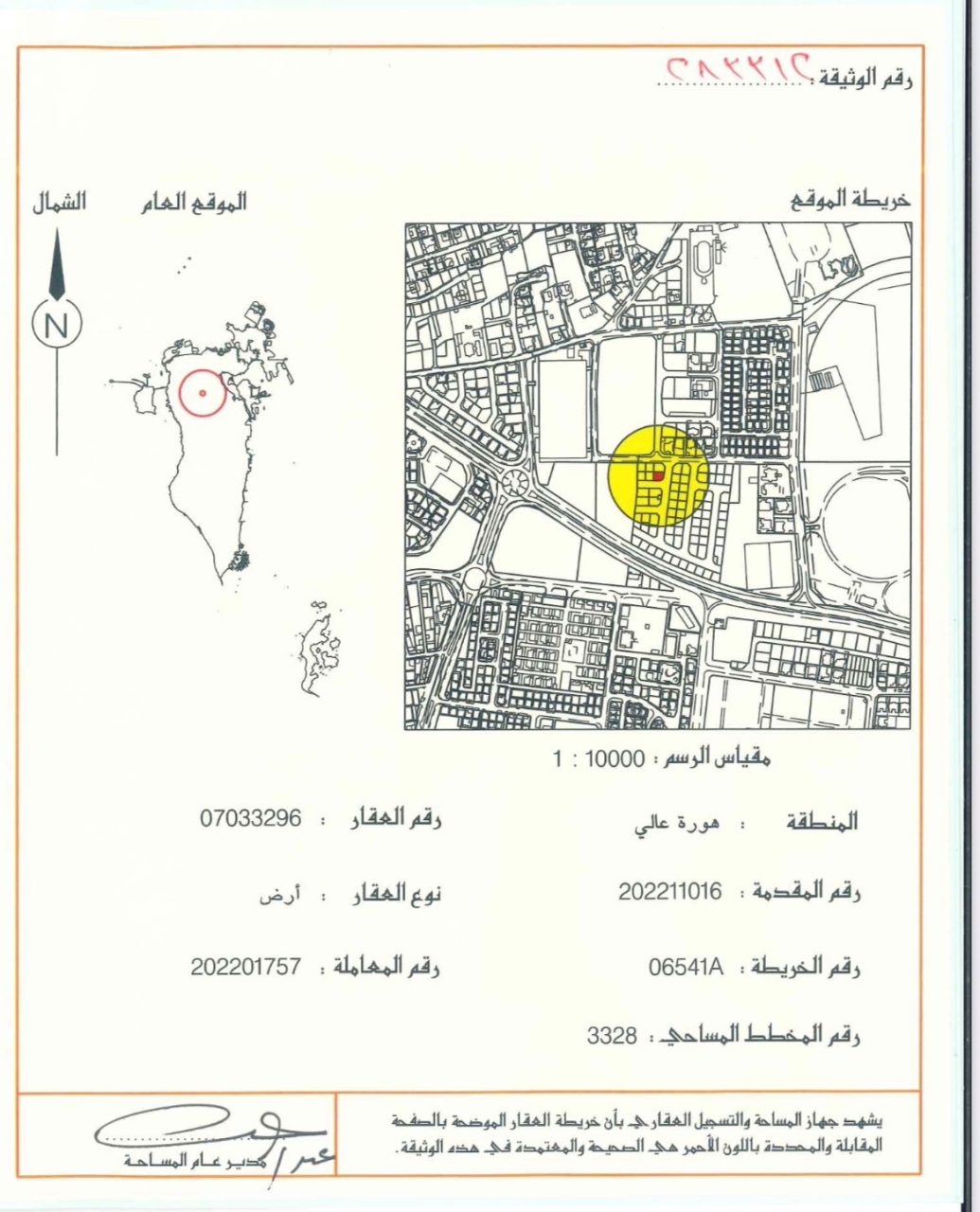 أرض سكنية للبيع في هورة عالي بتصنيف RA (سكن خاص - أ) تقع على شارعين (زاوية). مساحة أرض 338.6 متر مربع, بسعر 32.00د.ب لكل قدم مربع , السعر الإجمالي 116,630.080د.ب
