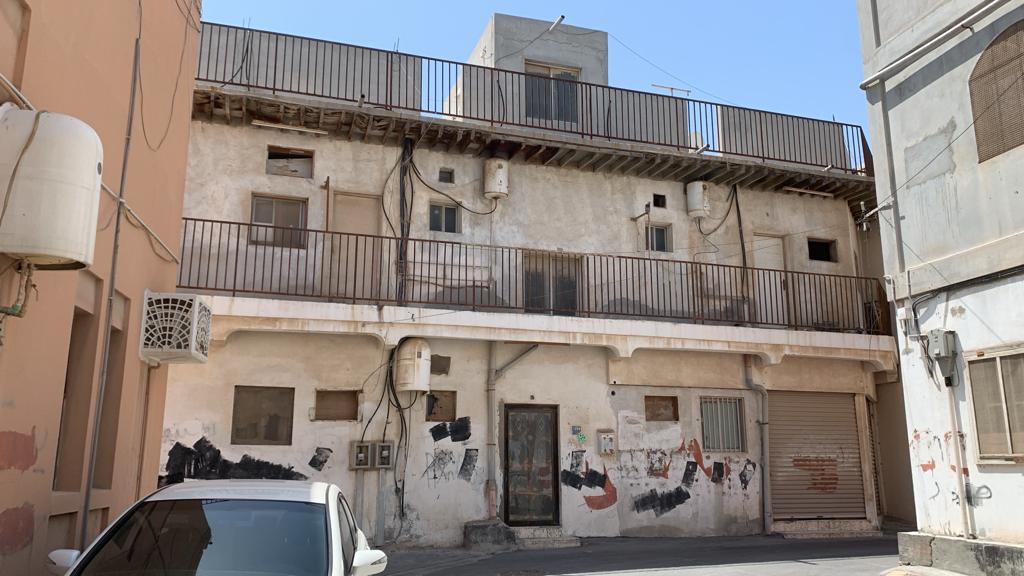 البناية تتكون من اربع شقق كل شقه فيها غرفتين و حمام و صاله و مطبخ و ايضا محل تحت لم يشكن في المبنى من 12 سنه