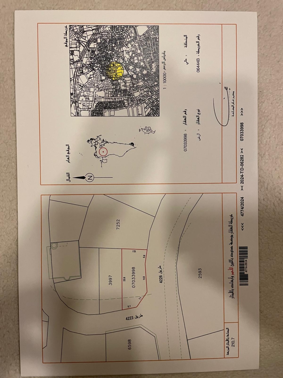 Residential Land for Sale in A'ali with a classification of RHB (Connected Residential Area – B ). The Land size is 210.7 SQM, priced at 32.00BHD per SQFT , with a total price of 72,575.040BHD