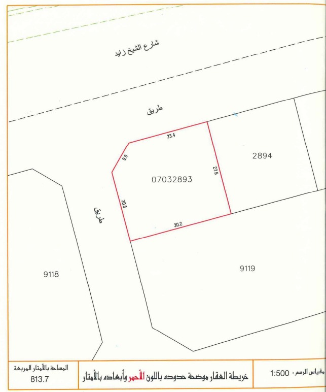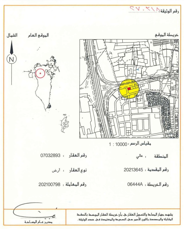 Residential Land for Sale in A'ali with a classification of IS (Implementation Stage) located on Two Roads (Corner). The Land size is 813.7 SQM, priced at 28.00BHD per SQFT , with a total price of 245,242.760BHD