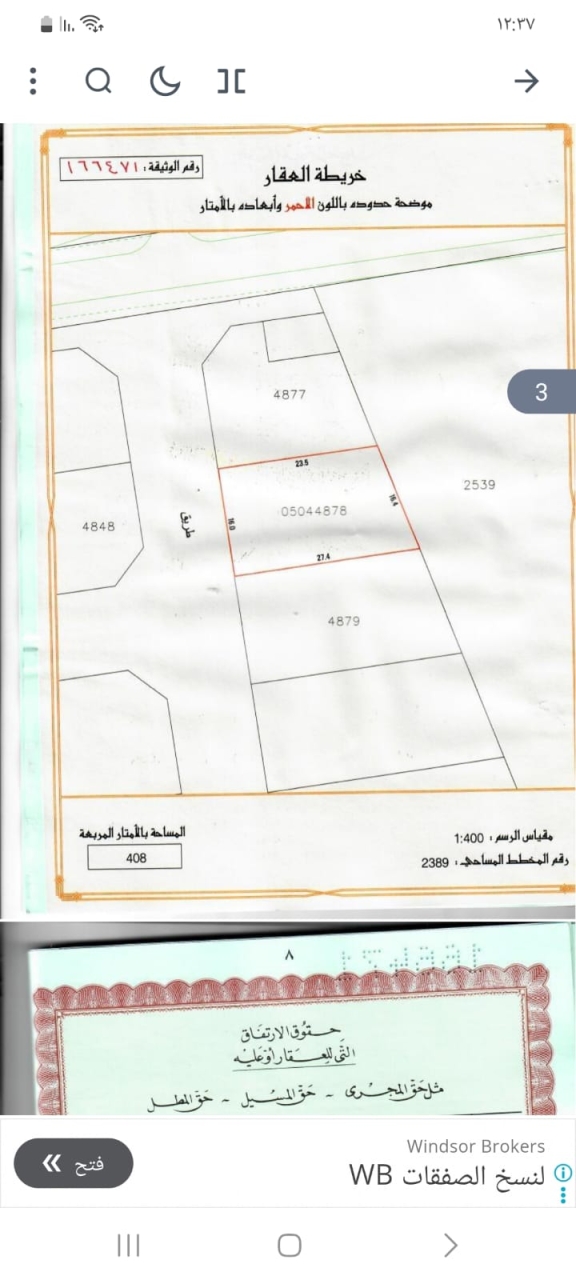 Residential Land for Sale in Budaiea with a classification of RB (Private Residential Area - B). The Land size is 408 SQM, priced at 23.45BHD per SQFT , with a total price of 103,003.166BHD
