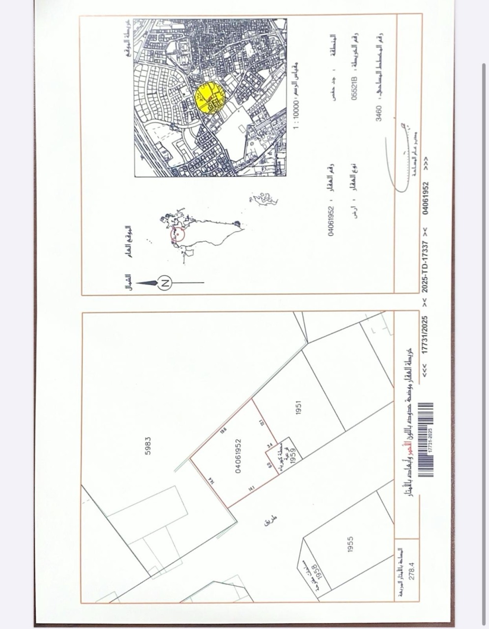 Residential Land for Sale in Daih with a classification of RB (Private Residential Area - B). The Land size is 278.4 SQM, priced at 27.54BHD per SQFT , with a total price of 82,529.118BHD