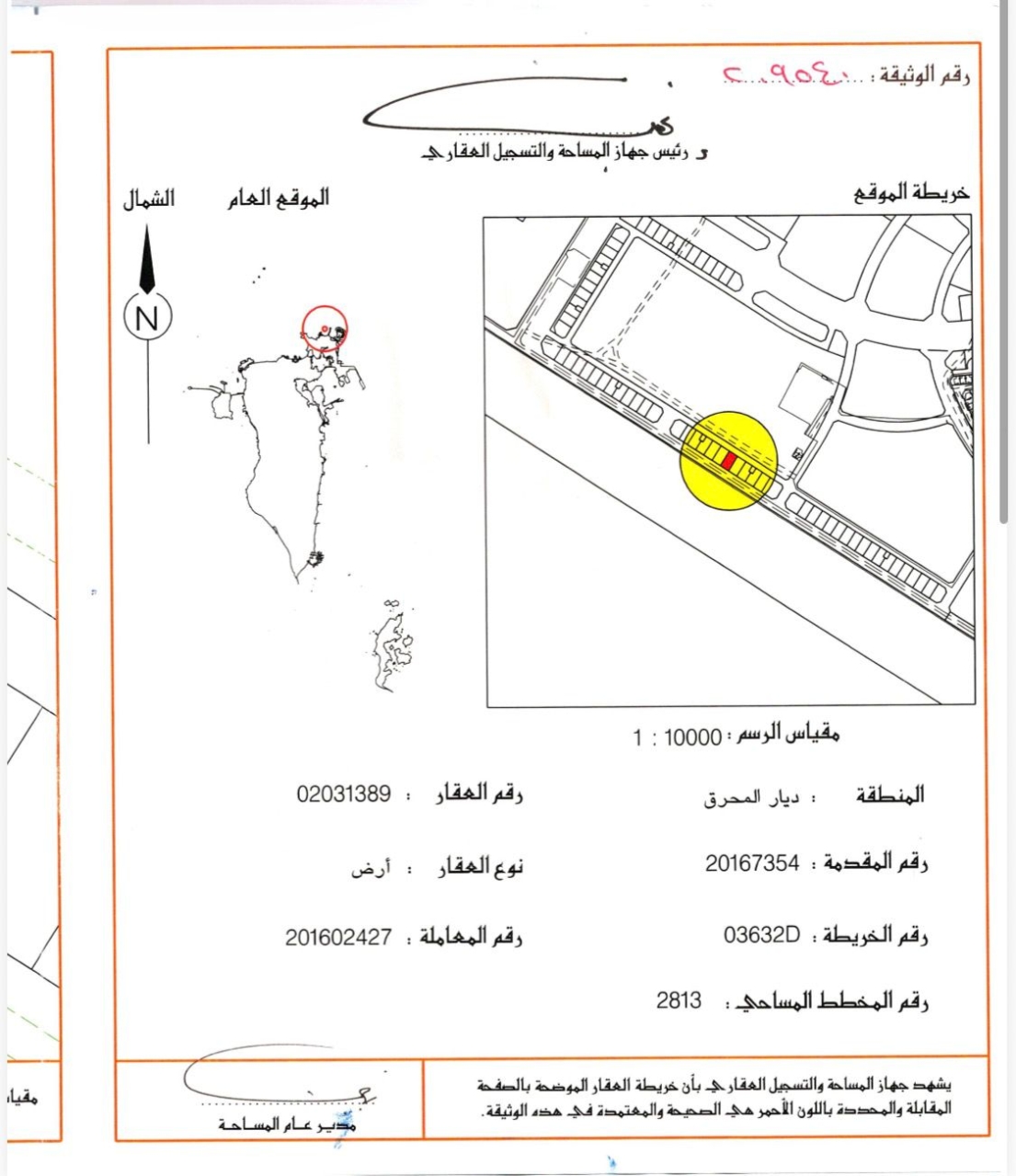 Commercial Land for Sale in Diyar Almuharraq with a classification of B3* (عمارات 3 طوابق تجاري). The Land size is 700 SQM, priced at 33.00BHD per SQFT , with a total price of 248,648.400BHD