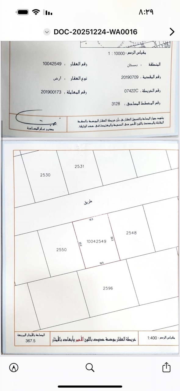 Residential Land for Sale in Dumistan with a classification of RA (Private Residential Area -A). The Land size is 367.5 SQM, priced at 25.00BHD per SQFT , with a total price of 98,894.250BHD