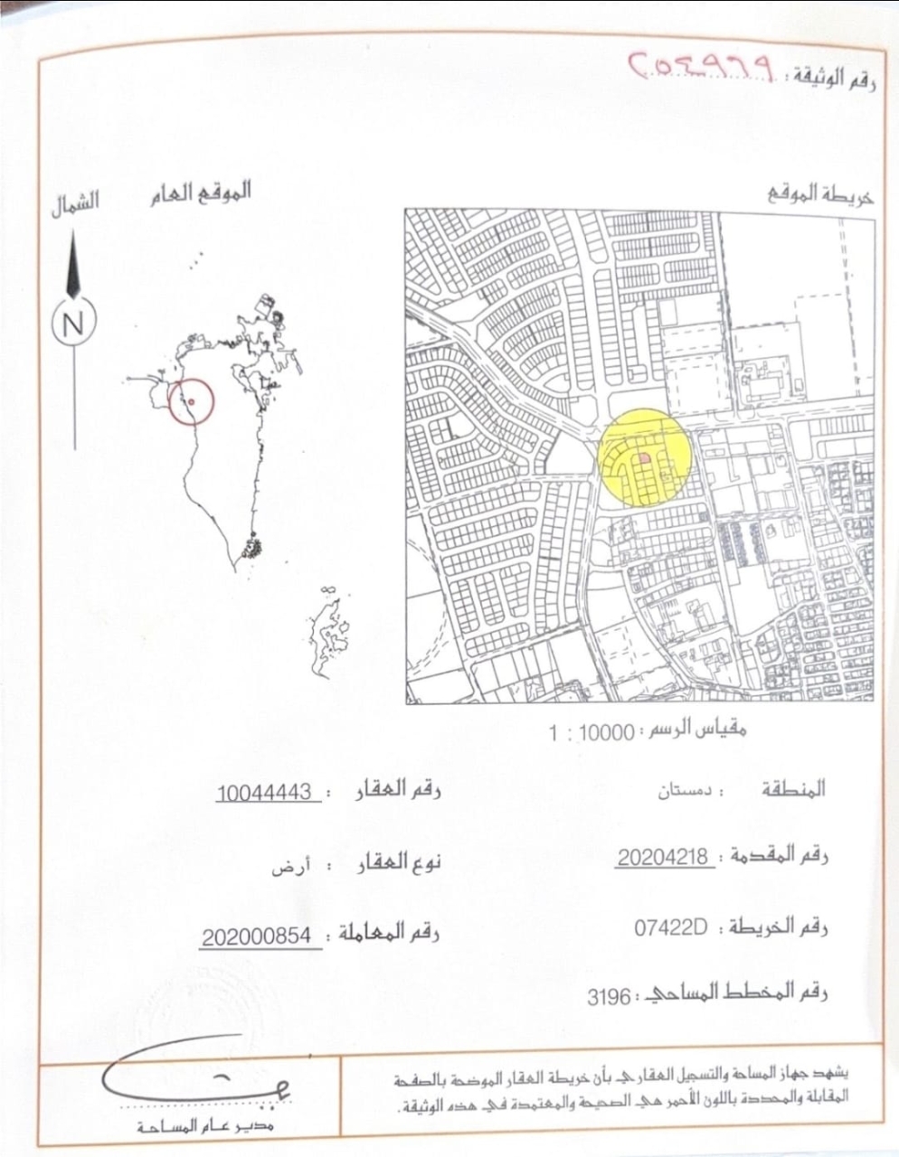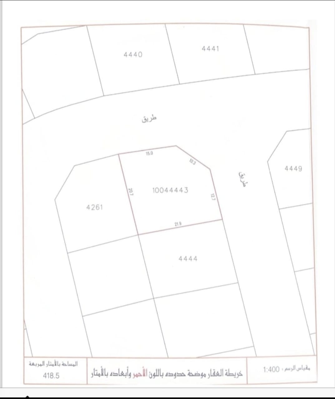 Residential Land for Sale in Dumistan with a classification of RB (Private Residential Area - B) located on Two Roads (Corner). The Land size is 418.5 SQM, priced at 27.00BHD per SQFT , with a total price of 121,627.710BHD