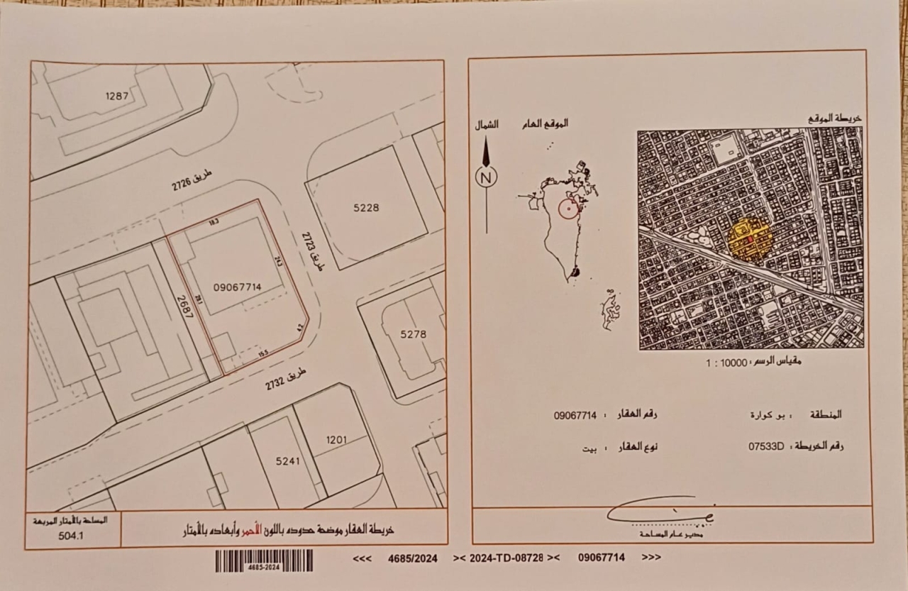 Residential Land for Sale in East Riffa with a classification of RHB (Connected Residential Area – B ). The Land size is 504.1 SQM, priced at 28.93BHD per SQFT , with a total price of 157,000.000BHD