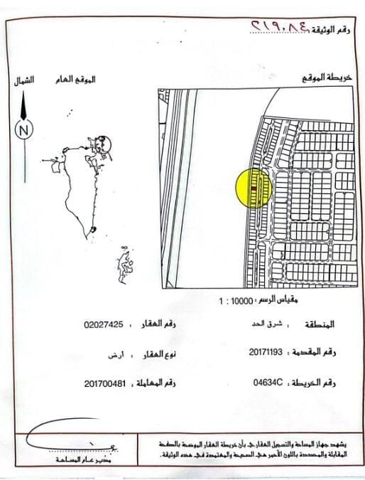Commercial Land for Sale in Hidd with a classification of B3* (عمارات 3 طوابق تجاري). The Land size is 452 SQM, priced at 34.00BHD per SQFT , with a total price of 165,000.000BHD