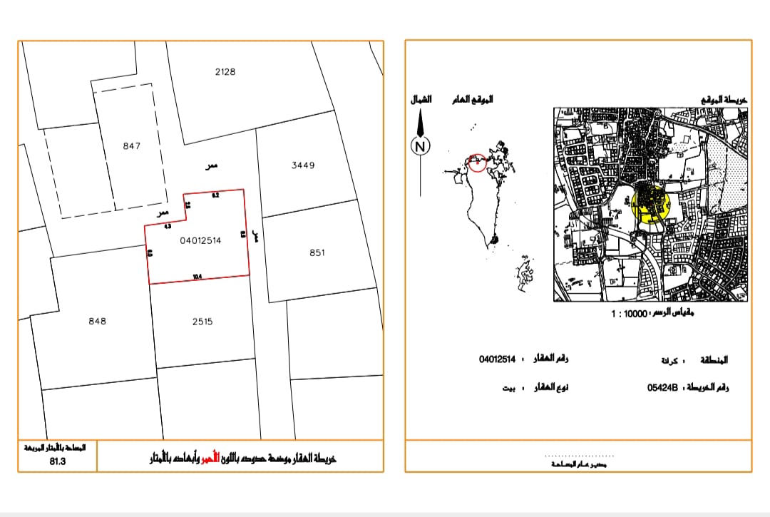Residential Land for Sale in KARANAH with a classification of RHB (Connected Residential Area – B ). The Land size is 81.3 SQM, priced at 36.57BHD per SQFT , with a total price of 32,000.147BHD
