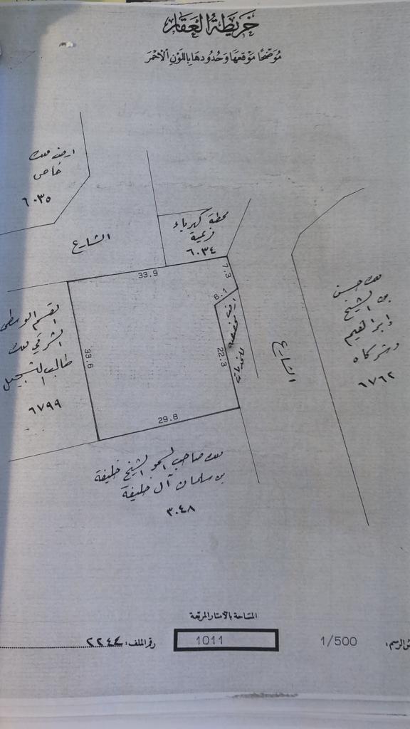 Residential Land for Sale in Sar with a classification of RA (Private Residential Area -A). The Land size is 1011 SQM, priced at 26.00BHD per SQFT , with a total price of 282,942.400BHD