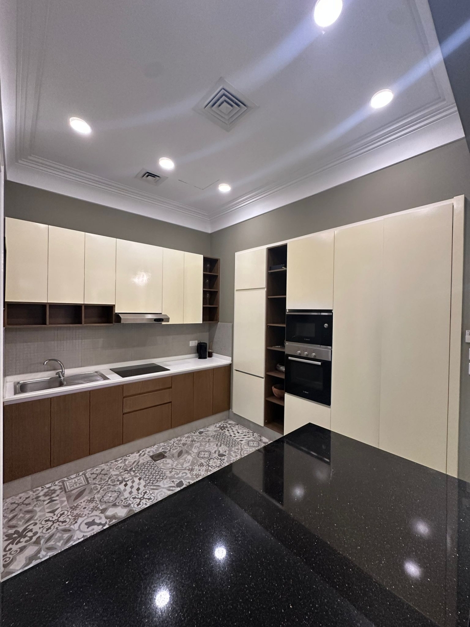 Consists of: 2 Floors, 3 Rooms, 1 Master Rooms, 2 Maid Rooms, 5 bathrooms, 2 Majles, 2 Kitchens, 3 Halls, 1 Stores, 2 Parking